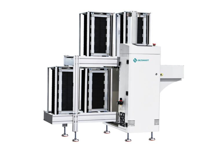 Features: Dual-lane structure for board unloading, designed for dual-lane production lines. Two control panels available for selection:Easy-to-operate, light-touch LED membrane switch or a touchscreen. Upper and lower pneumatic clamps ensure accurate magazine positioning Special air circuit design prevents damage to the PCB Automatic fault code detection and display function Wear-resistant cables for long service life…