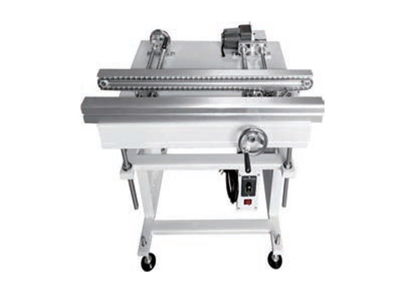 Features: Easy-to-use speed adjustment knob Chain-type transport design, high load-bearing capacity and stable transmission Optional rectangular welded frame or aluminum profile frame Parallel and smooth manual width adjustment (via lead screw). Adjustable conveyance speed and height. Minimize transmission clearance between conveyors Custom machine sizes available upon request Technical parameters Description: This machine is used to…