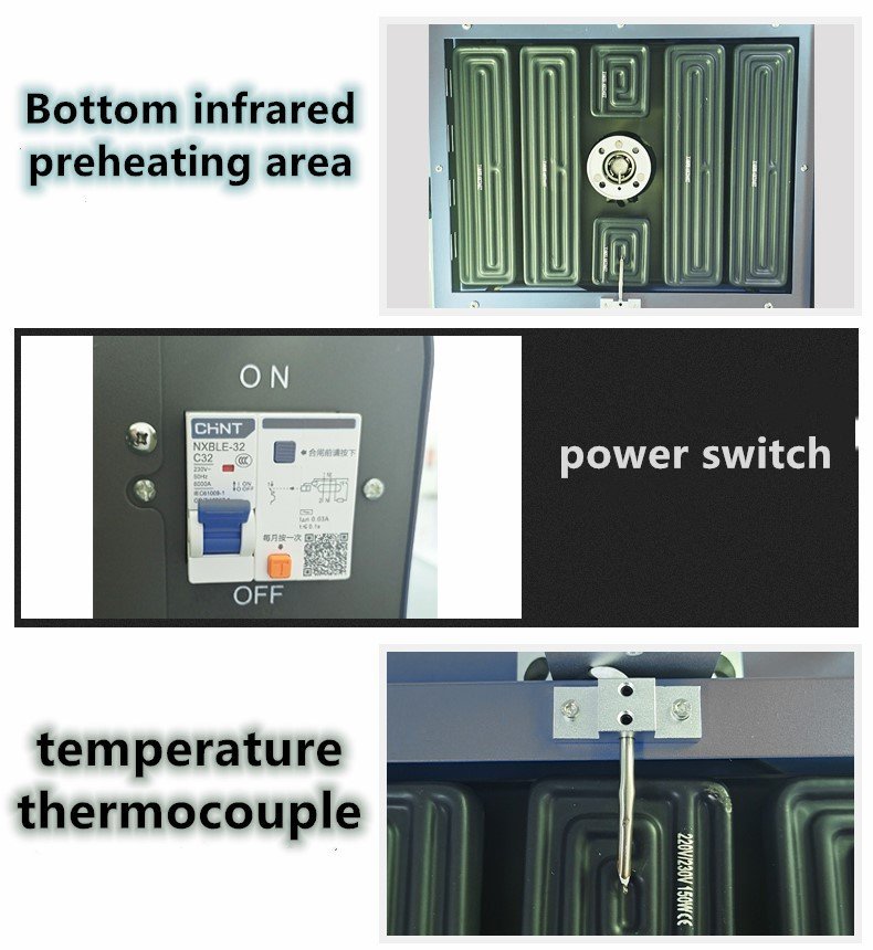 - Регулируемый нижний нагреватель (диапазон перемещения по высоте 3 см)